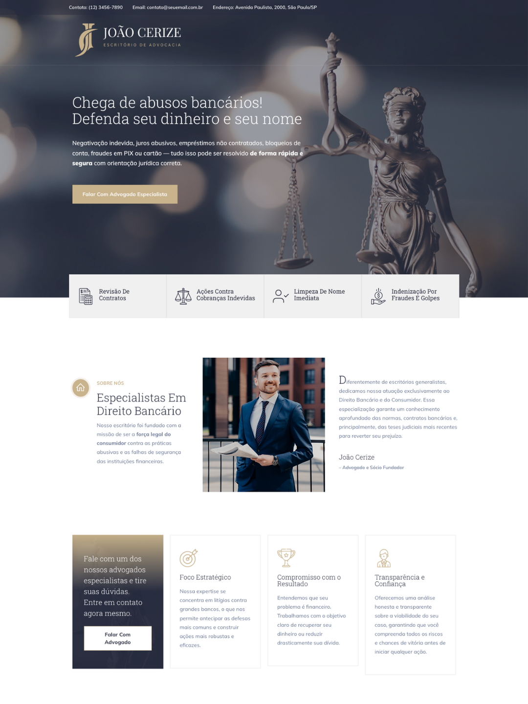 Publicado em Guilharducci e Mendes de Souza Advocacia03/06/2025Trustindex verifica se a fonte original da avaliação é Google. O serviço realizado pela equipe do "Site para Advogados" ficou muito bom. Durante toda a execução do projeto, a interação da equipe foi espetacular, sempre providenciando os ajustes em tempo muito curto. O suporte para implementação e utilização das ferramentas do site foi perfeito. Indicamos a empresa com certeza.Publicado em Cristiano Galrao06/03/2025Trustindex verifica se a fonte original da avaliação é Google. Muito ágil e tudo foi feito como combinado! O resultado me surpreendeu positivamente! Recomendo!Publicado em Anna de Carvalho Corrêa Tanure18/12/2024Trustindex verifica se a fonte original da avaliação é Google. Excelente serviço e suporte! Indico de olhos fechadosPublicado em Filipe F.19/08/2024Trustindex verifica se a fonte original da avaliação é Google. Excelentes profissionais, sempre de prontidão para prestar o melhor serviço.Publicado em Ana Paula Rebello15/07/2024Trustindex verifica se a fonte original da avaliação é Google. Amei a experiência com eles. Rápidos, diretos e muito eficientes.Publicado em cassio kallas01/02/2024Trustindex verifica se a fonte original da avaliação é Google. Profissionais altamente qualificadosPublicado em Helen Andrade Advocacia18/01/2024Trustindex verifica se a fonte original da avaliação é Google. Profissionais de muito talento e habilidosos com a técnica de designer de sites. Fiquei muito satisfeita com o trabalho desenvolvido por eles. Vale a pena o investimento nesse serviço. Indico à todos!